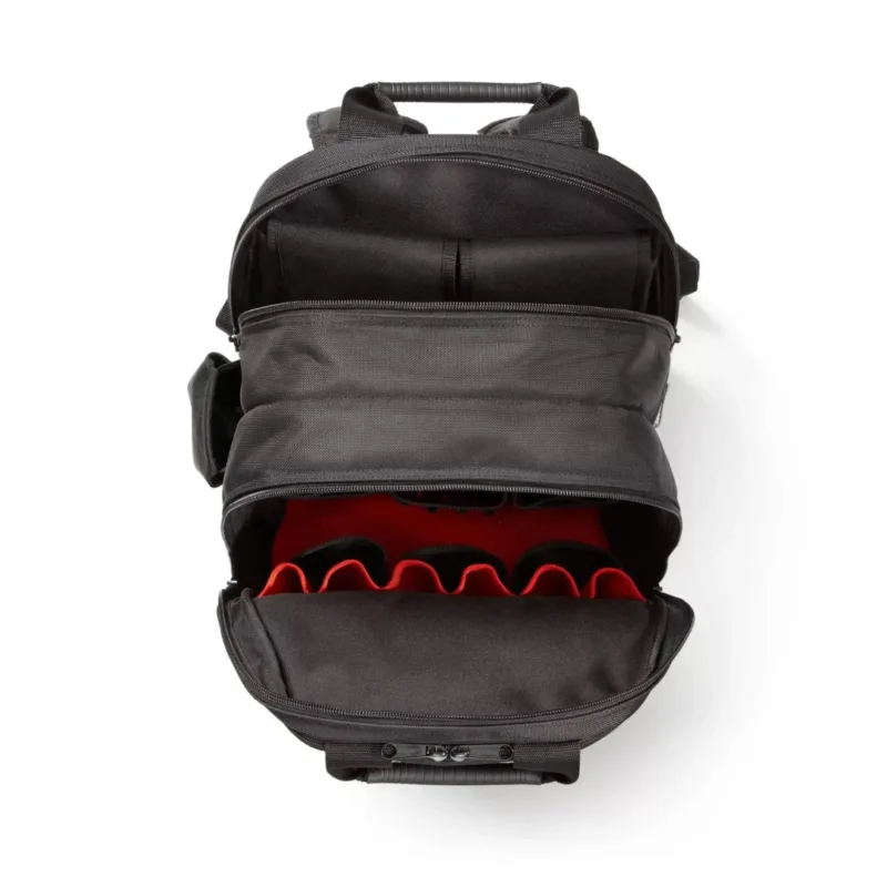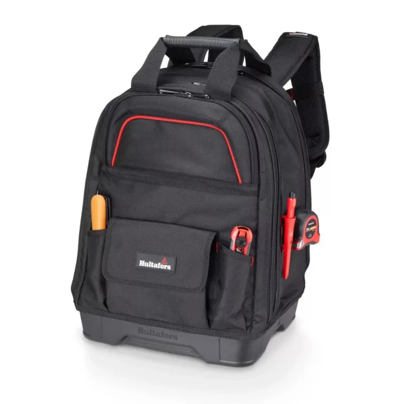 - Spoljašnji držač za metar, držače za olovke, držač za ključ i elastične trake za manji alat poput srafcigera.